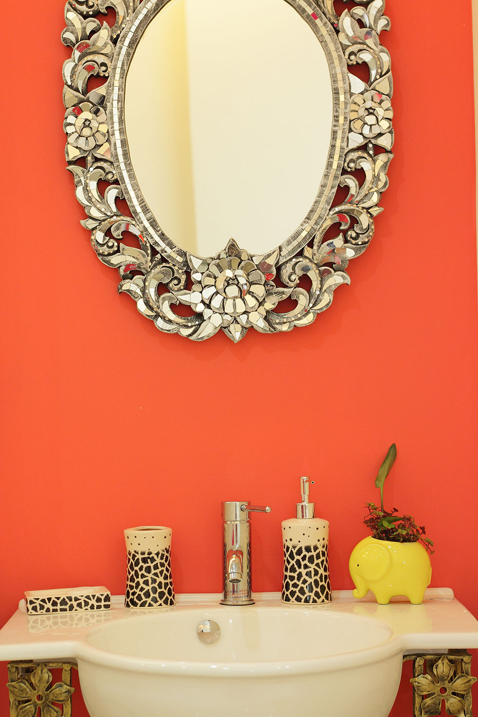 主體顏色裝潢為紅白對比配色,呈現大方活力的藝術設計,